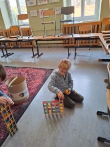 Nachdem die erste Klasse Gegenstände nach verschiedenen Arten geordnet und sortiert hat, versuchten die Schüler:innen dies auch mit sich selbst. Gar nicht so einfach, sich nach der Größe zu sortieren. 🙂